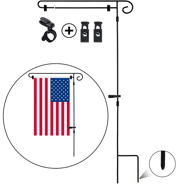 HOOSUN Garden Flag Stand, Graden Flag Holder Easy to Install Strong and Sturdy Wrought Iron Pole 36" x 18" Fits Mini Flag 12.5" x 18" with 1 Tiger Anti-Wind Clip 2 Anti-Wind Spring Stoppers (Black-A)