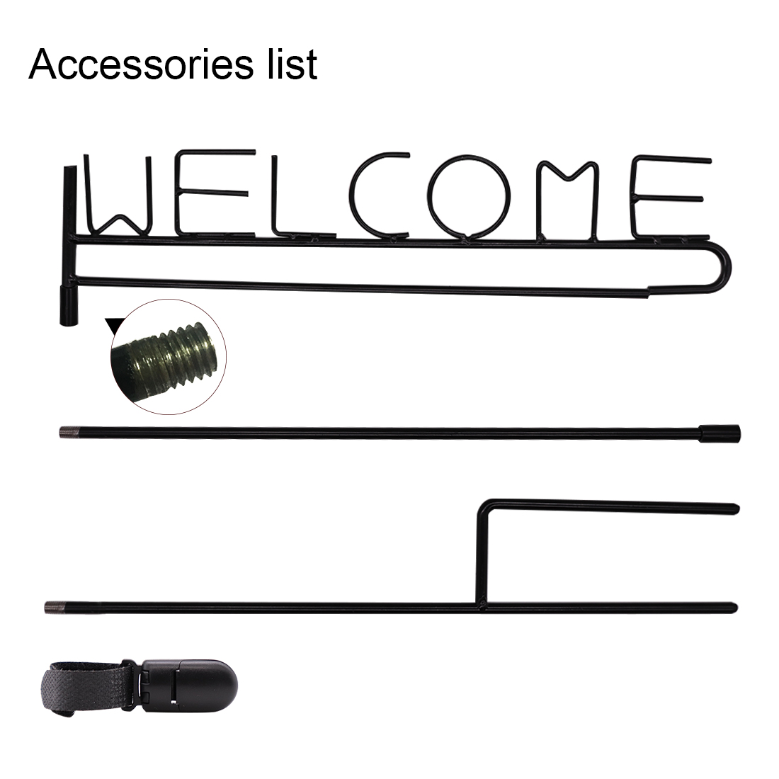 - ★ The Perfect Garden Flag Stand: Can display “WELCOME” and your favorite flag at your front door or backyard garden,Simply place into the ground and attach your favorite garden sized flag.